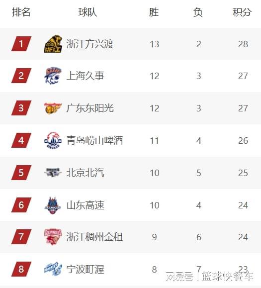 附:CBA积分榜最新排名