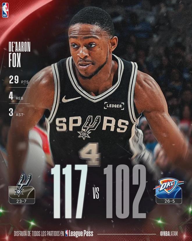 马刺本赛季首次击败雷霆,是在NBA杯赛的半决赛上,当时他们以111比109险胜。