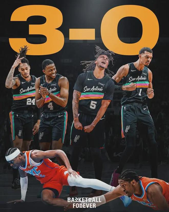 做到这一点的,是马刺。如果这是在一个7局4胜的系列赛里,那么马刺已经3比0领先,接近横扫了。