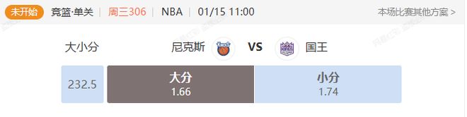 明日晚场NBA尼克斯VS国王大小分解析