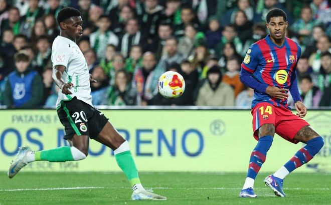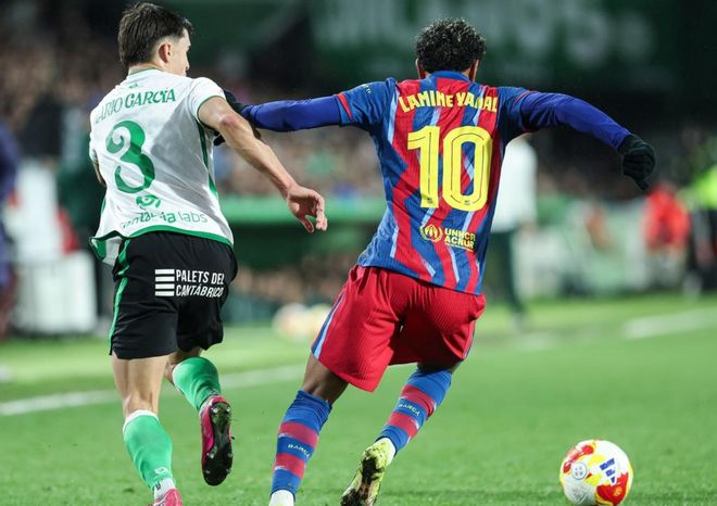 第29分钟,马里奥-加西亚踩人犯规,被出示黄牌。这也是上半场唯一的黄牌。随后,亚马尔任意球直接射门,皮球高出了横梁。第37分钟,贝尔纳尔在禁区前沿兜射远角,皮球稍稍偏出左侧立柱。7分钟后,拉什福德在禁区左侧起脚低射,力量太弱。门将倒地把球扑住。半场结束,巴萨0-0桑坦德竞技。