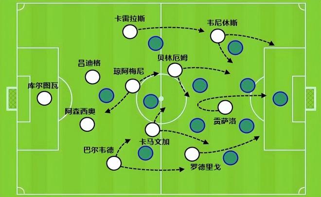 同样是罗德里戈任意球助攻队友破门,与塞维利亚的比赛中,贝林厄姆的头球是靠弹跳和身体素质力压对手,那么与贝蒂斯的这个进球,将贡萨洛在门前的跑位和摆脱能力展现得淋漓尽致。
