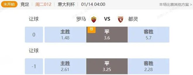 竞足 周二012 意大利杯 罗马VS都灵