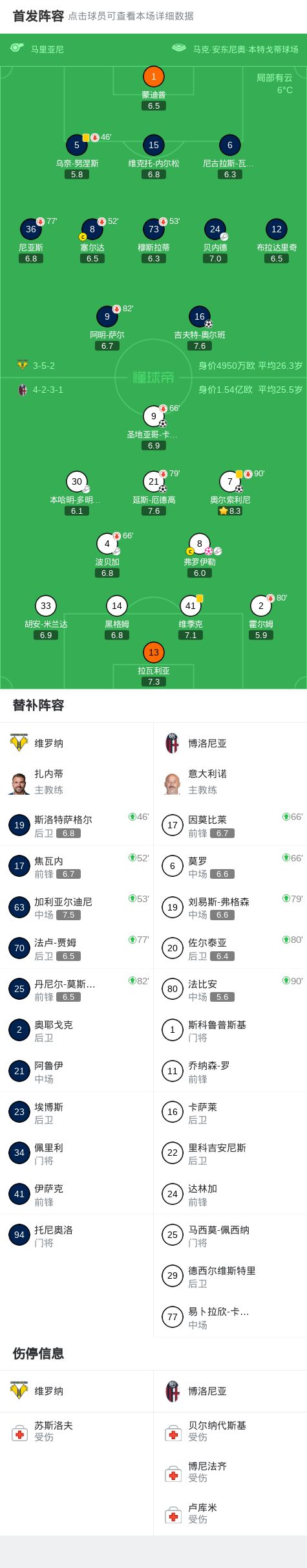 博洛尼亚32逆转维罗纳,圣地亚哥卡斯特罗、延斯厄德高建功