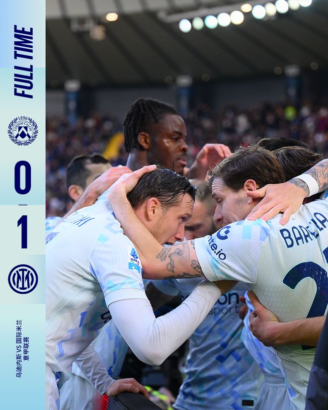 全场比赛结束,我们客场1比0战胜乌迪内斯!