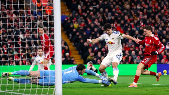 整个上半场,利物浦完成9次射门,3次射正,利兹联2次射门都打在门框范围,两队互交白卷。
