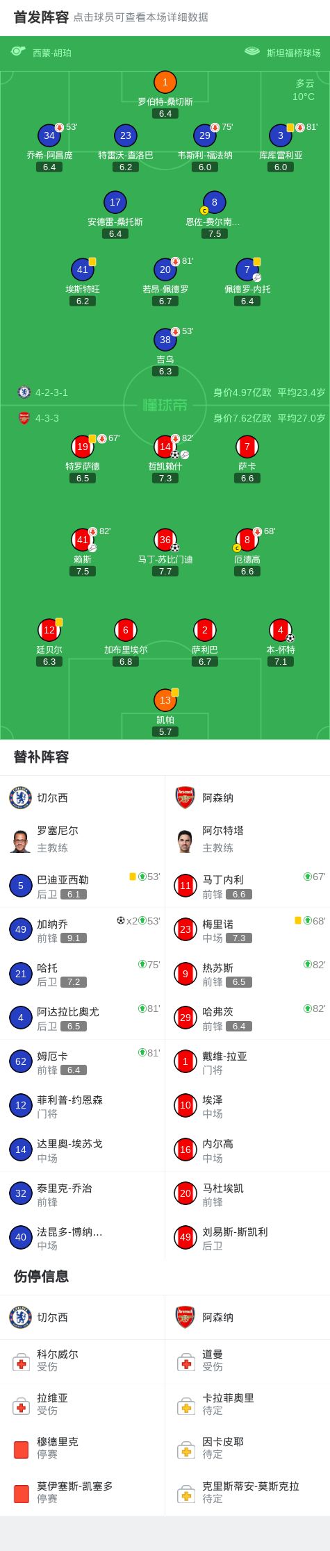第49分钟,罗伯特-桑切斯扑救失误,哲凯赖什笑纳大礼破门,阿森纳2-0!